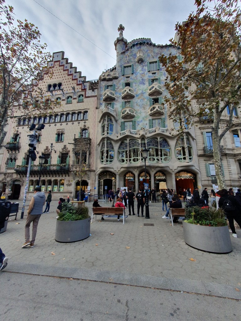 It’s a nice train, with diverting behaviour from two young ladies, whose black suitcase rolled towards me as the train pulled out. I rescued and returned it amid great giggling. The journey was initially through industrial suburbs and just as it got interesting it went underground, But it delivers me to Passeig de Gracia station five minutes from the hotel – if you come out the correct entrance. So fifteen minutes later I rock up at the hotel where they let me check in early which is a relief as I need to sit down for a bit. It is an OK hotel in a modernisme building but sadly my room does not have one of those nice balconies overlooking the street. There is a swimming pool on the roof but not open in December. Great views over the city though.