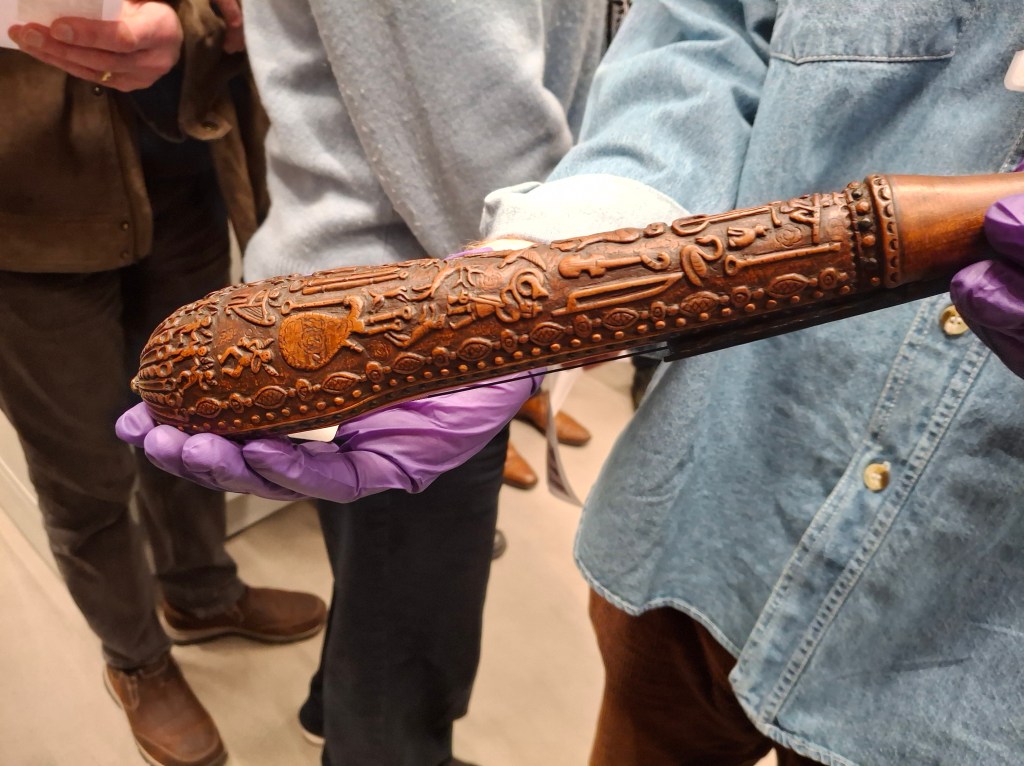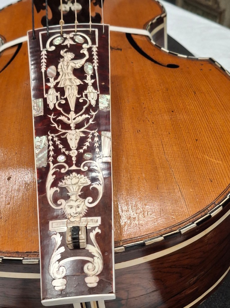 Carrving on a kit fiddleMartin explainingRandom juxtapositionInlay on a violThe vastness of the store is only hinted atThe huge Dragonetti bass is nearly three metres tall