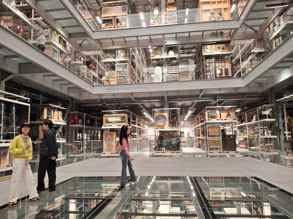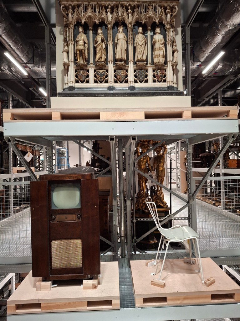 From time to time, the orchestra of the Orchestra of the Age of Enlightenment organises trips for Friends. I wrote about a visit to the amazing Hatchlands keyboard collection with Steven Devine last year. This one was to explore the wonder that is the V&A East Storehouse with Martin Kelly, my viola-playing team captain when we won the Chistmas Quiz. Martin had selected a number of instruments from the extensive V&A catalogue and gave us fascinating insights into the contruction, history and use of instruments ranging from the tiny kit fiddle used by dance masters to the enormous Dragonetti bass via a serpent and a harp and others from the racks. Some of the detail of design, carving and inlay was phenomenal. The breathtaking size of the storehouse and the randomness of displays made for a fascinating visit even after Martin had finished his excellent part of the tour.