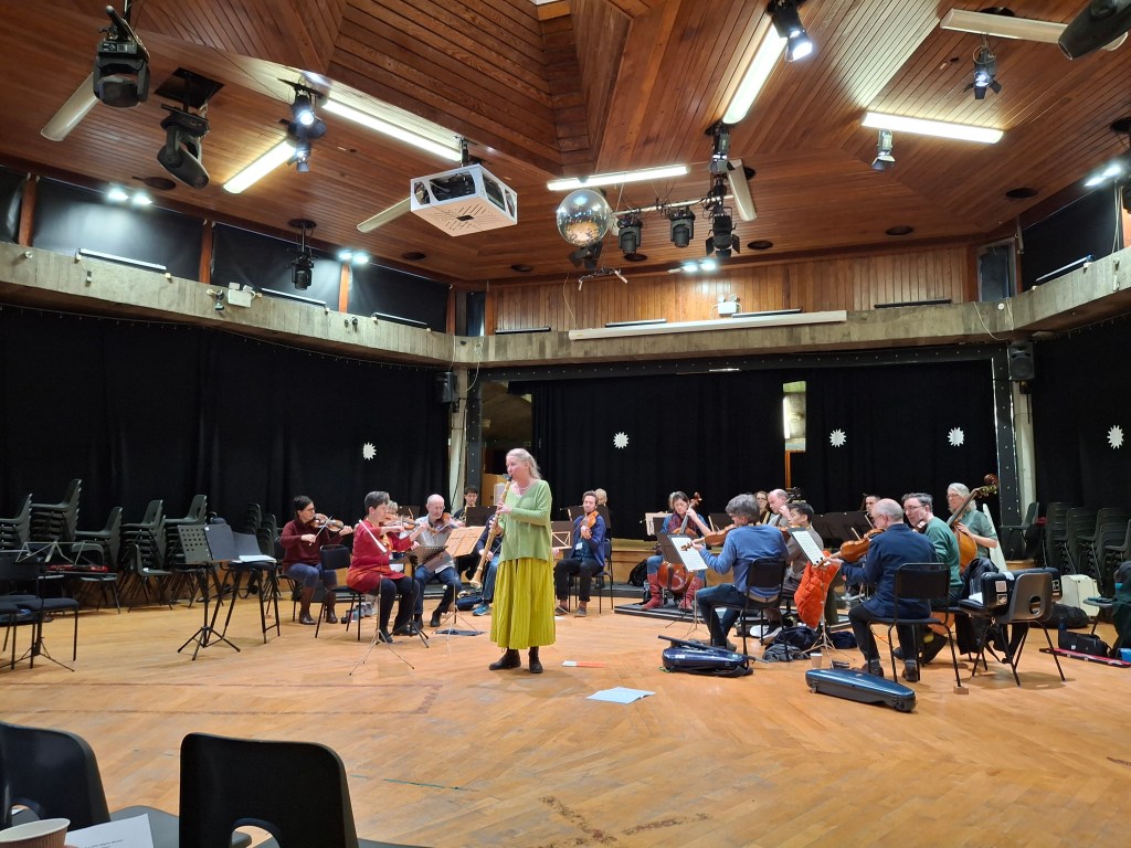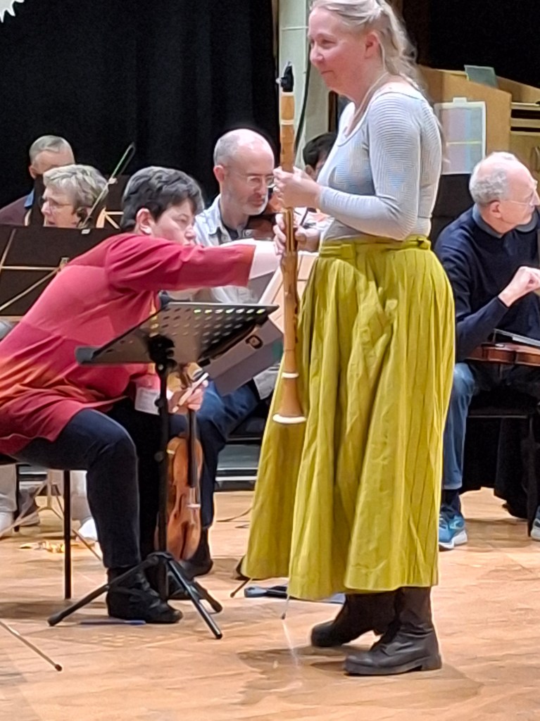 Kati makes notes, Waffy cradles her basset clarinet ‘Grace’Rehearsal in full flow