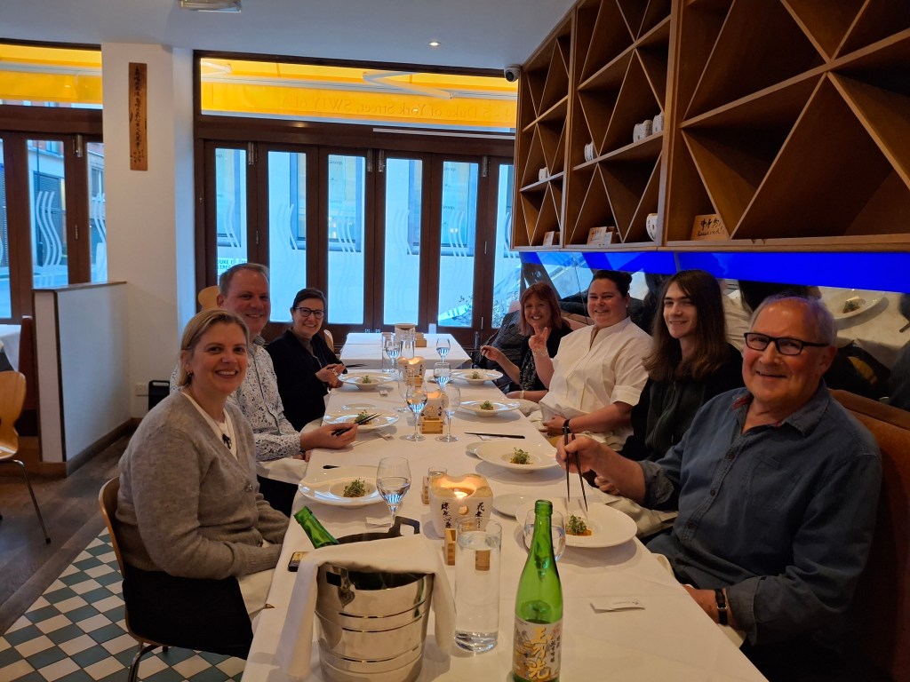 Then to the real business of the day. Anybody who has read previous blogs will know how important Yoshino is in my life. Dee and I first went to the old Yoshino in 2009 or 10 (I wasn’t blogging then or I’d know) when it was in Picadilly Place and came to know Lisa the Maitresse D’ quite well. Since then she’s been on a family outing to see My Neighbour Totoro at the Barbican and came to Glyndebourne with me in 2023 and we went as a family to the soft opening (right) of the new premises in Duke of York Street in April last year – minus Chris filming in Dublin and Daisy who didn’t fancy it, plus Rosa and Frances. So Lisa knows us all too.