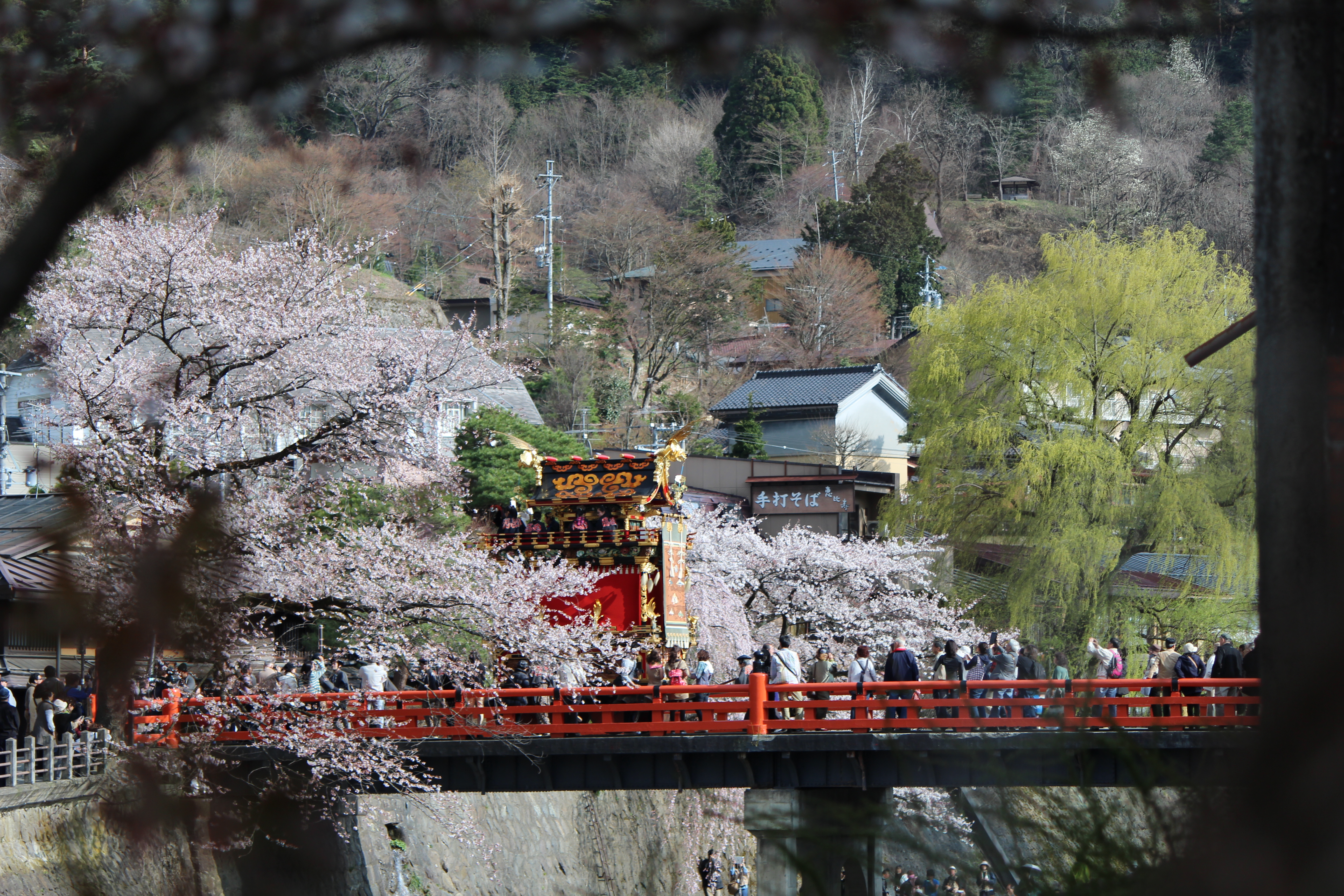 So the Pension Green Lake turned out to be a little gem. In a farmhouse inn the countryside with the kindest, friendliest hostess who after all had driven out to pick us up when lost last night. Our room was great, the bathing capsule perhaps a little small but great power in the shower which is all that matters when you’re up for breakfast at 7.30. Again a delicious home-cooked scrambled eggs with crispy bacon, half a grapefruit, fresh salad and brioches with real strawberry jam. Fabulous! And Megumi, as is the wont of hosts and hostesses stood and watched us eat – we may feel it’s intrusive, they are ensuring ichi-ban service. We set off for Takayama for the spring festival or matsuri and for once had an uneventful drive except that we had to stop five minutes into the trip to photograph a family of monkeys running across the road. Amazing!Monkeys