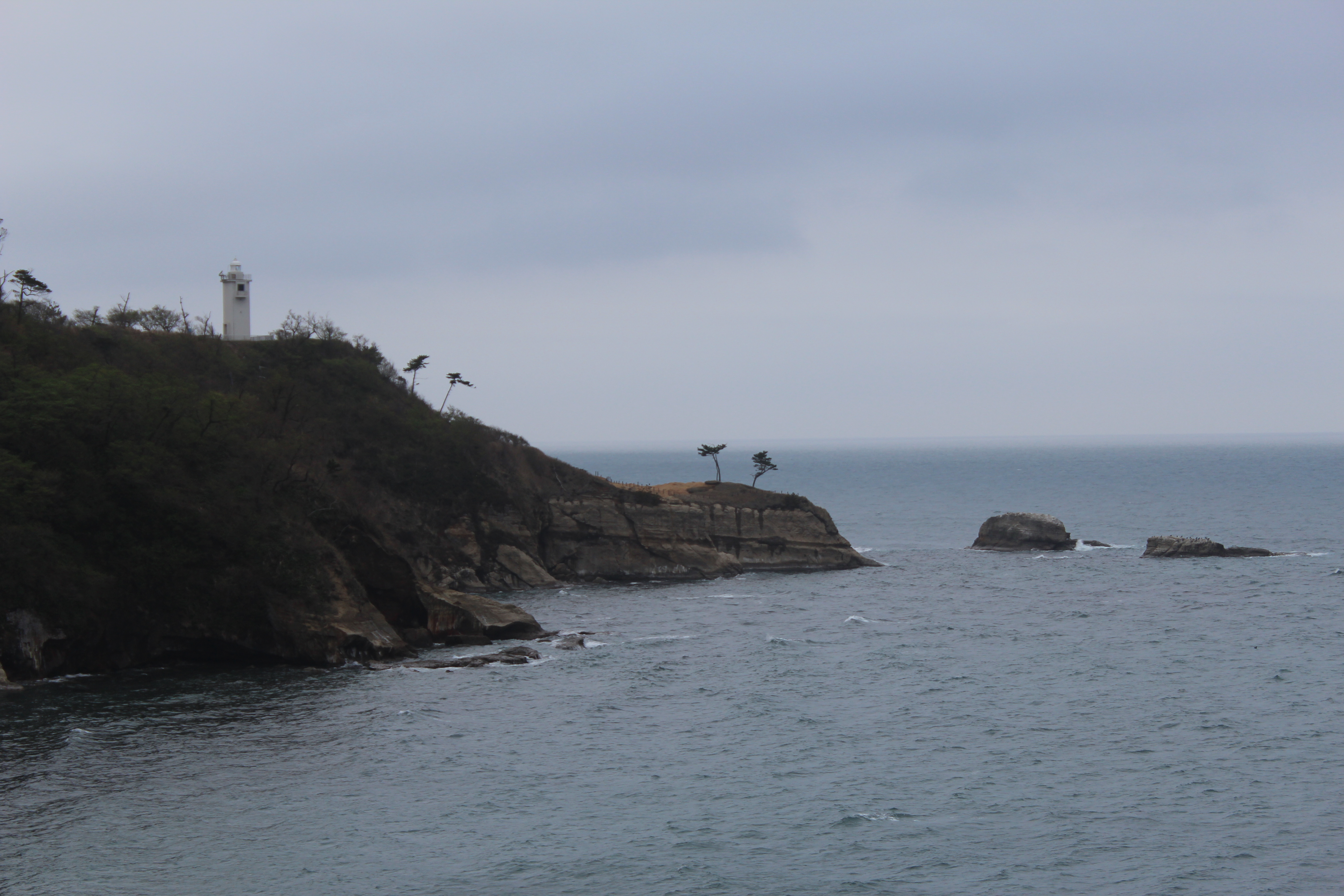 We had hoped to drive down to Kyoto along the coast but it didn’t quite go right. Instead of the bright blue of yesterday we had grey humid mist. However we arrived here and saw the sea. It is Cape Kasa, the westernmost point in Kaga Prefecture. We also met a local gardener who was determined to offer Dee some vegetables to take home to cook. Dee’s now excellent Japanese enabled her to persuade her that sadly we were in hotels and going to Kyoto with no cooking facilities and had no friends to whom we could give them.