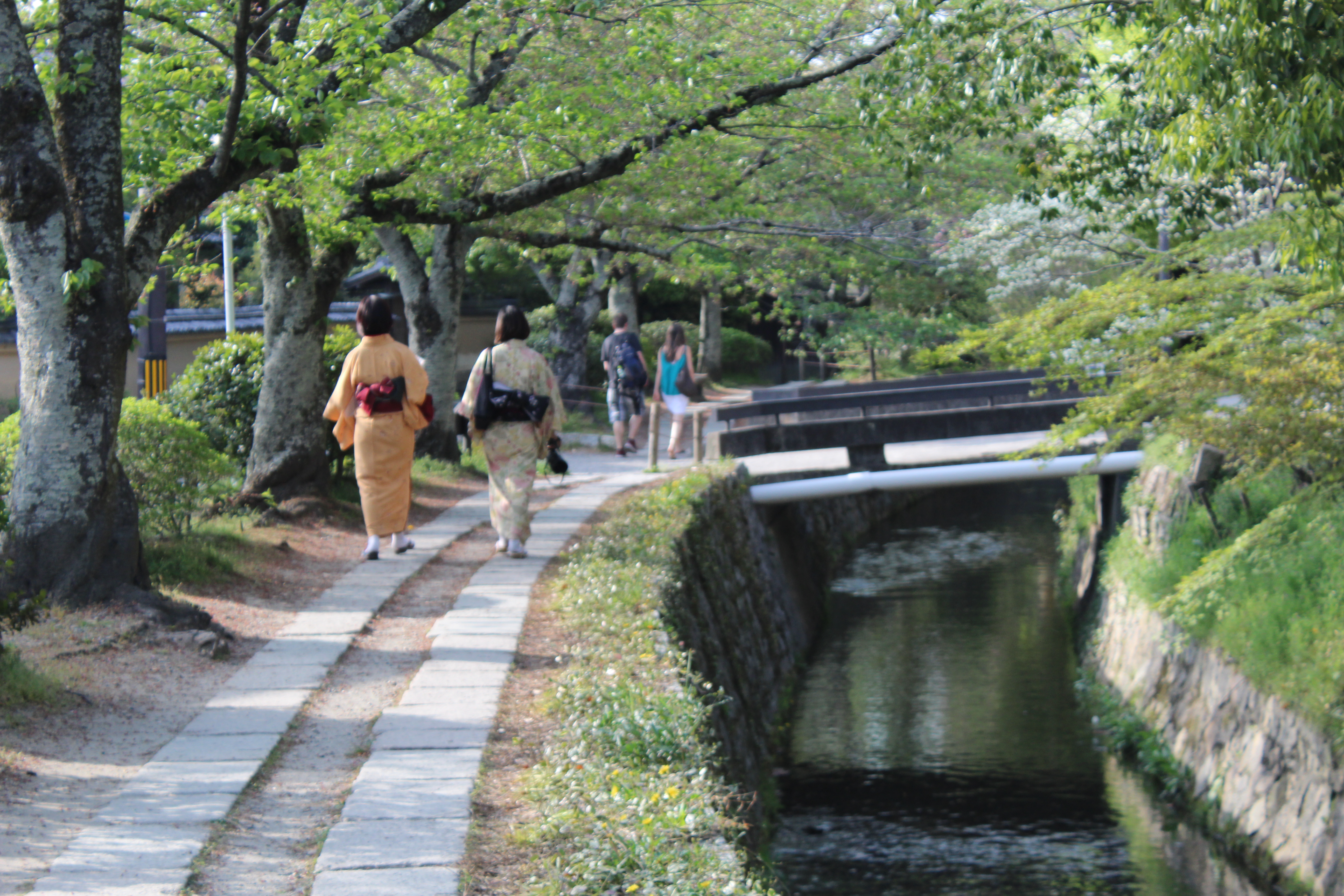 Refreshed we strode off to the Nanzen-ji Temple where we enjoyed the beautiful spring garden – the shimmering colours of acers in spring are almost a match for their autumn glory and of course so much fresher. Here we also obtained, as advised, our hon (pr. hone) a folding book on which temples stamp their insignia with a hanko (handwritten kanji combined with a special rubber stamp). They are beautiful and will give us a great souvenir of our trip.