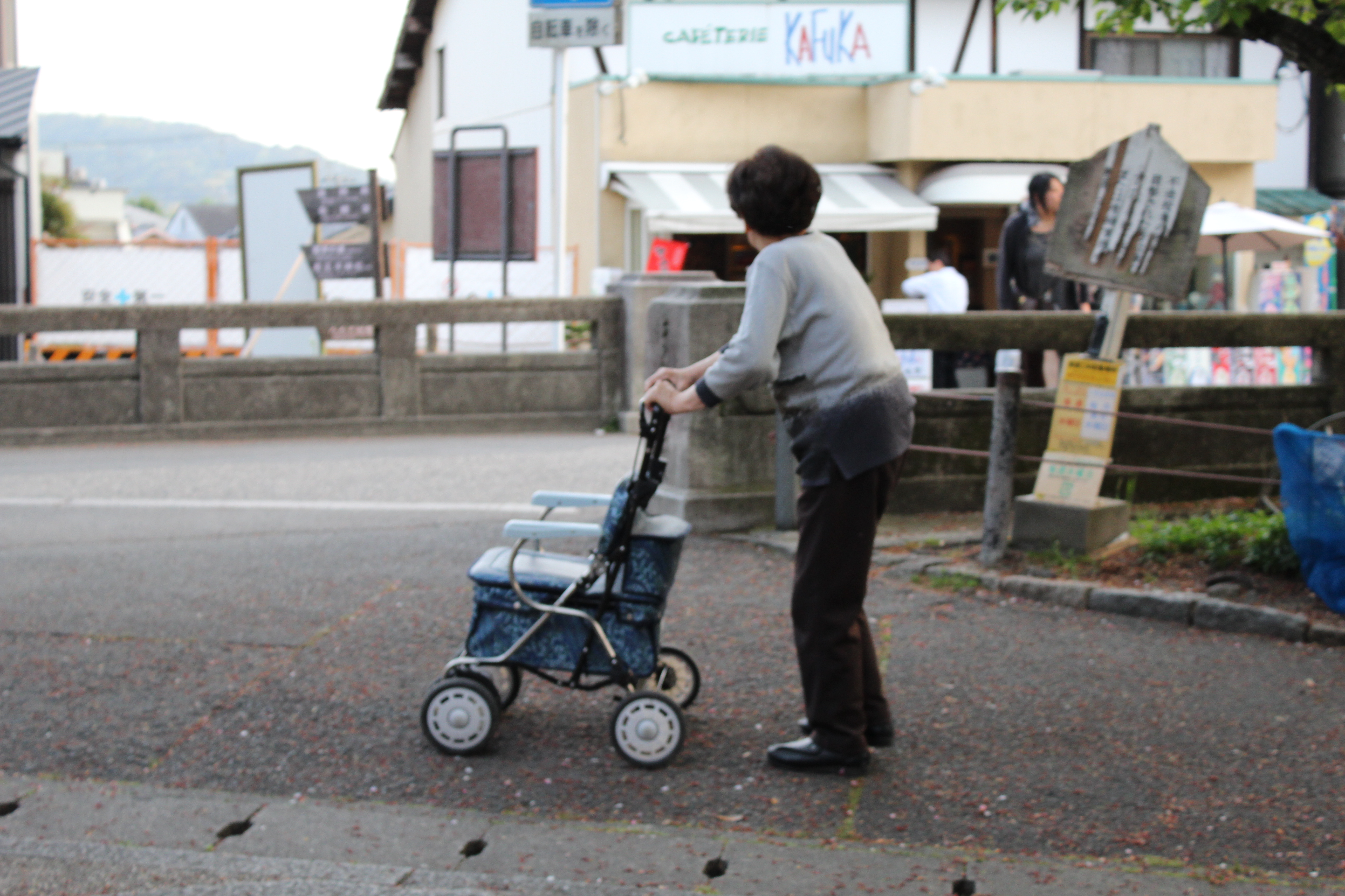 Having set out in jeans and jumpers we quickly found temperatures soaring to 25 and up. We didn’t pack shorts but fortunately did have some light walking trousers and sandals which were more appropriate attire for the day – thank goodness for the three day unpacking stay. We set off with Katie’s “dorky” maps to explore some small parts of this huge city. Mastering the simple two-line subway, we went first the Shinjo-dori the main shopping street to see if we could buy a Japan road atlas in English to help with our next stages of rentacar travel. We found a big bookshop with new Murakami book posters everywhere but no road atlas. Off the main street, which is the universal, global big city shopping area, are arcades crammed with little shops which are much more interesting. Then we came to another of Katie’s suggestions, Pontocho, which is a narrow street lined with bars and restaurants overlooking the Tama River. It was so warm that we just had to go into one to enjoy the air conditioning for a bit and of course a beer. We had a great view of a team who had dammed up part of the river to build a platform out over it which apparently many of them do for the summer season. We could imagine the delights of a glass of wine out on the terrace.