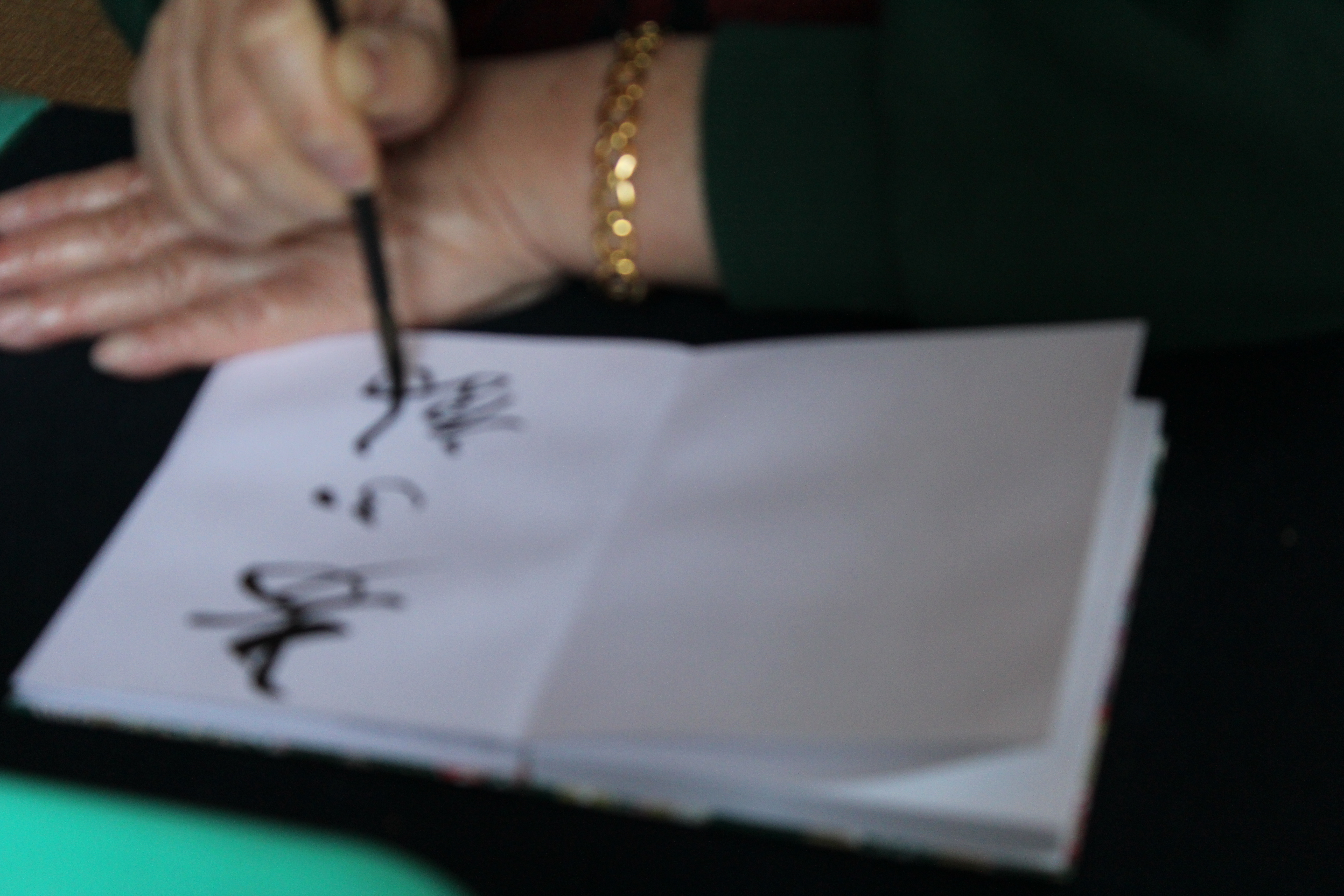 Friday dawned fresh, bright and breezy and it was back to jeans and sweaters big time. How can the temperature change by 15 degrees overnight? Well it did and we took the subway south to visit Higashi Inari Shrine. Sadly we missread the map and finish up at a station which is s forty-five minute walk from the shrine rather than the railway station that’s right in front of it. So a taxi was hailed and delivered us to the Fox Shrine which apart from amazing main buildings has a walkway of shrine gates or torii which stretch up to the main shrine on the mountain and involve 10 000 vermillion gates – awesome. We only walked the first three thousand as other sites called but a stroll to the top and back would make a great half day outing given more time. We were approached by a uniformed guard and were worried that we’d been photographing in the wrong place but he was a retired firefighter who had spent time in Sheffield and Liverpool on job exchanges and welcomed the opportunity to speak English. We next took a short train ride to Tofukuji Temple where the buildings are stupendous but the main attraction was a beautiful zen garden on all four sides of the main hall. A wonderful oasis of peace and contemplative strolling in the midst of busy, busy Kyoto. On our way back to the station we called into a small temple Doju-in where the attendant most beautifully calligraphed and then stamped our hon.
