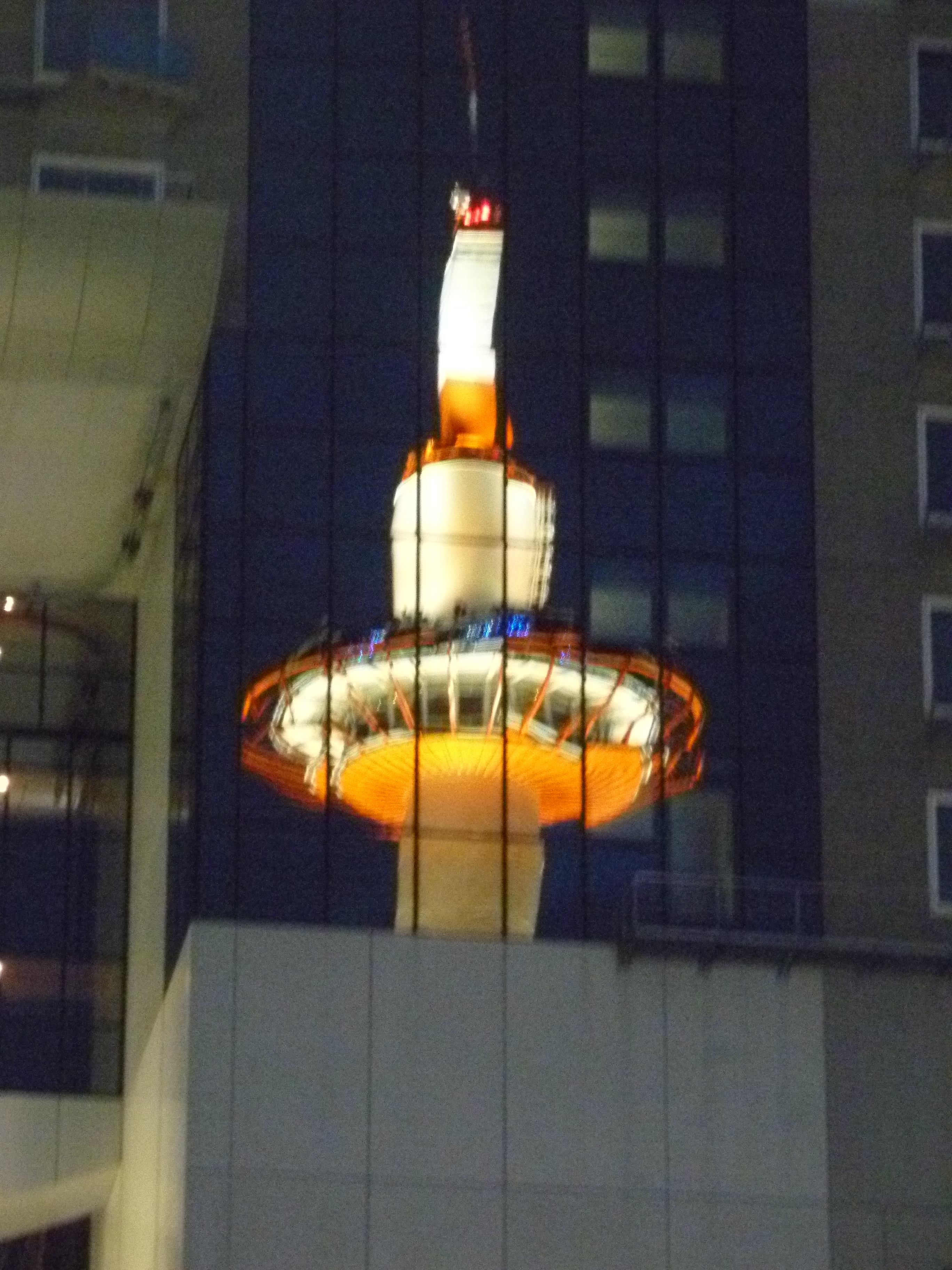 As we got back to the station, we decided to see if the Kyoto Tower had an observation gallery. It does, we went up. Dusk falling visibility hazy after the heat of the day but a fun visit nonetheless.