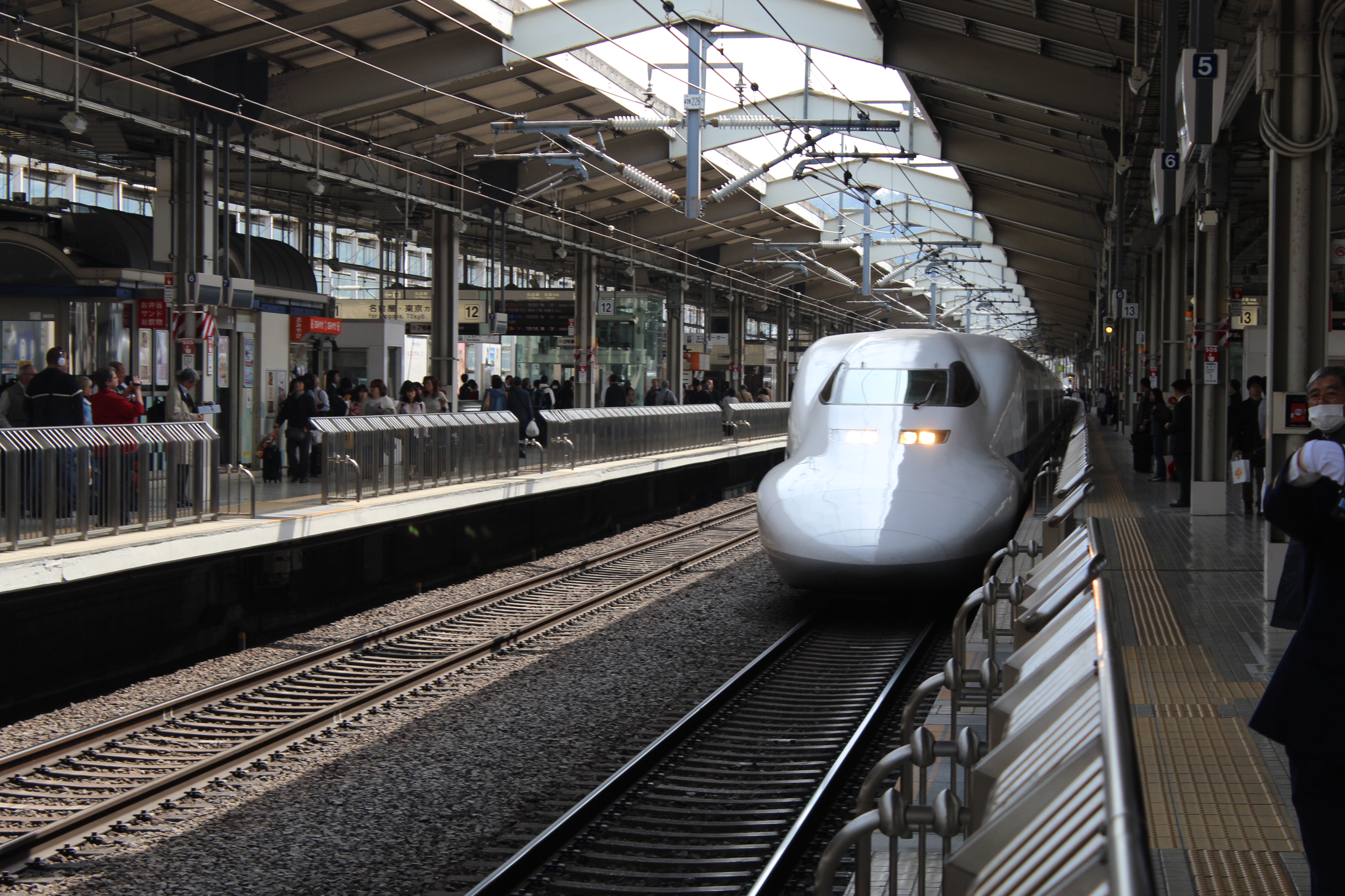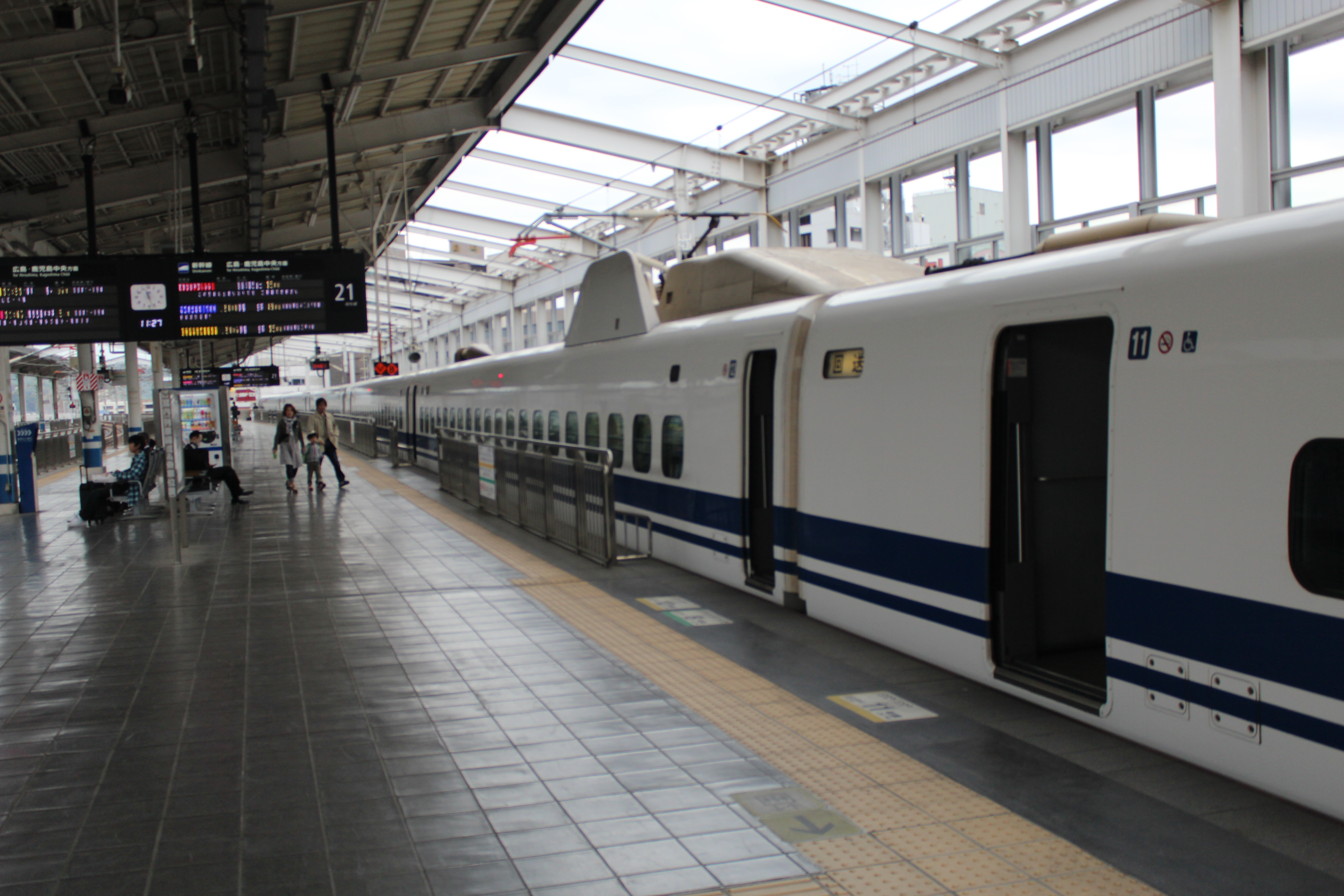 First impression of how much space there is. We were worried about stowing our copious baggage but it fitted in easily. There are loos and recycling points every two carriages, a trolley service comes through with acceptable coffee and sandwiches and so on which we didn’t need to try having scoffed our sushi. After that initial delight the actual journey was a bit dull. Much of the track runs through noise-reducing barriers or tunnels so you can’t see much. But it is quite fast once it gets out of the station area. You feel that satisfying little push of the seat into your back as the acceleration kicks in. From Kyoto to Osaka is only 26 miles and we did it in 13 minutes so quick but not amazing. The rest of the trip to Okayama was similar because of three more stops but we have longer journeys ahead.