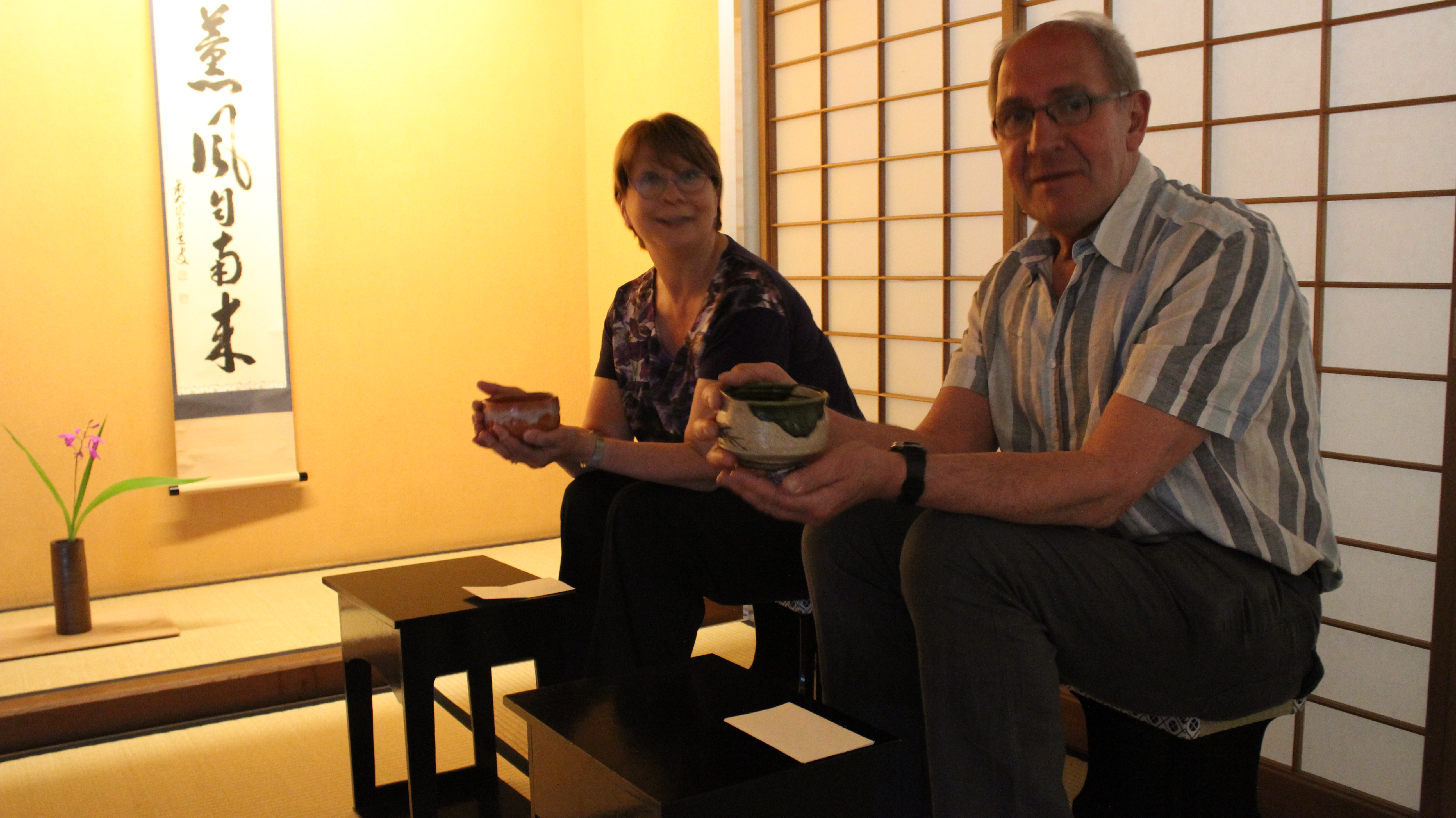 We then go past the baseball stadium to check our gate for tonight and a photo op. Then a walk to the Meiji Memorial Picture Gallery to find the unicorns featured in Hard-boiled Wonderland and the End of the World. Disaster as there is no sign of any unicorns on or around the building until a cry of “behind you, behind you” from Dee causes me to turn and espy a pair of unicorn statues on the other side of the road. Job done we now set off to be tourists and experience a tea ceremony.