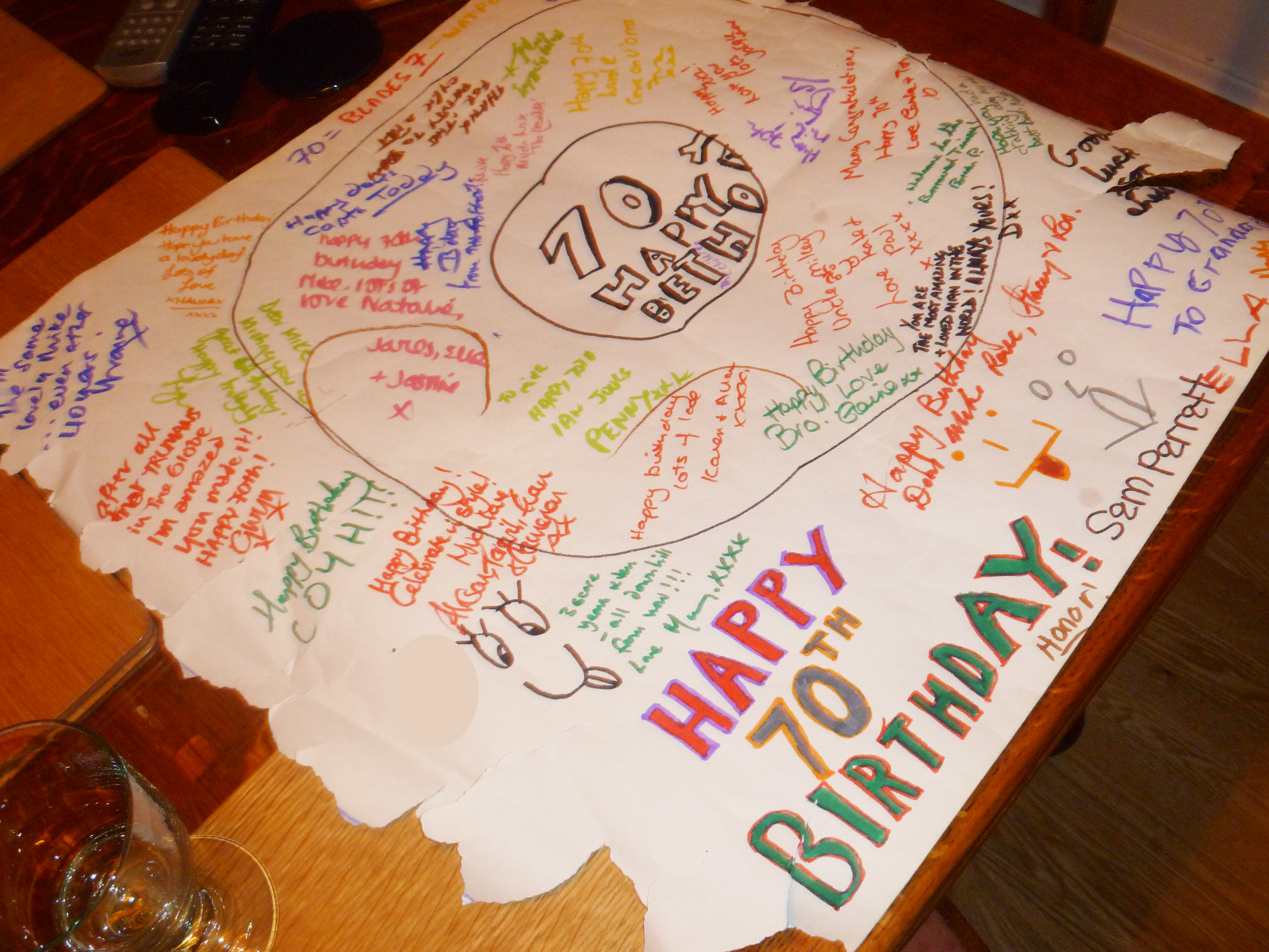 Saturday afternoon and evening was spent in the company of more than 80 friends and relatives with ages ranging from one to 85 and it was wonderful. The excellent Union Club in Soho had been booked as the venue by Dee and they pulled out all the stops to make it a brilliant occasion. We’ve had so many emails from people who also enjoyed it that I now know it wasn’t just me. The food was excellent, liquid refreshment flowed and I had a chance to catch up with everybody – if only briefly with any one group. The young people present did a brilliant job getting everyone to sign a giant birthday card. I even had birthday cakes and the real surprise for me – my face on the label of a case of Harvey’s 1943 Birthday Ale specially commission by the mastermind of the whole occasion, Dee. Wow have you set the bar high for yours! But thank you for an absolutely fabulous continuing birthday celebration.