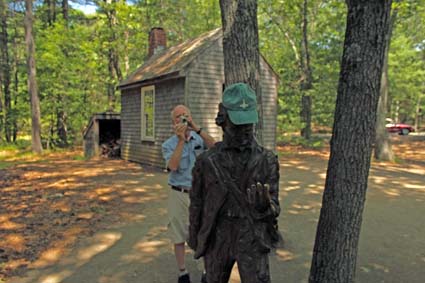 We had arranged to meet our friends Joe and Pat Weiler on Monday to go to Walden Pond to see Joe’s exhibition of photographs Thoreau’s Legacy at the gallery there and then go for a walk to the site of his (Thoreau’s) cabin. We are great admirers of Joe’s work and have several at home and the exhibition was superb. It blended Joe’s artistic vision with his and Thoreau’s concern for nature and conservation in a most thought provoking and dramatic way. We were low on useful dollar bills so Joe bought us some postcards and pencils for our grandchildren on the basis that they write him the postcards and send them back.