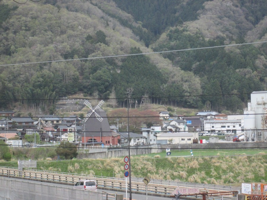 As we wound gradually upwards I was struck by a windmill in the middle of Makigawa and later had a stop to snap a typical settlement in one of the flat bits. Japan is 73 percent mountains with the population crammed into a quarter of the land area. At this time of year, April, the nascent leaves on the deciduous trees give the mountains a very fluffy look. I’m told they look great in the autumn too when the acer go through their colour changes. The little bluebottle buzzed its way nicely up through the Fukushiyama Pass at 323 metres above sea level and onto the Kannabe Plateau. On the way I had passed several stopping points for adding chains or changing to snow tyres but my favourite was one that had the tyre sign but also “Nap Parking”. The Japanese are the world leaders in napping in my experience – on the subway all the time, on buses, planes, on park benches so given the distances you can drive it’s probably a good idea to stop for forty winks. I didn’t nap but did have a coffee break. Route 9 goes all the way to Tottori but gets sucked into a toll-free expressway so I had to ignore the very polite “turn around when possible” and follow my nose. It led me to a parking lot called Tottori Sand Dune Parking. These are Japan’s only dunes and they are constantly shifting, mostly on today’s evidence inland across the roads.