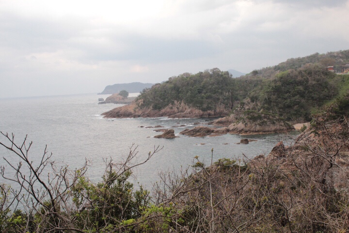 I carried on through a tiny village road eliciting some strange looks from homeward bound schoolchildren and their parents. I had that awful feeling I’d be driving sheepishly back past them after a dodgy three-point turn. But no, it emerged onto a lovely winding coast road with ample stopping places to walk a stretch of the coastal footpath. I’m not sure whether the footpath extends the full 120 kilometres of the park which carries on from Tottori Prefecture in the west through Hyogo and Kyoto.