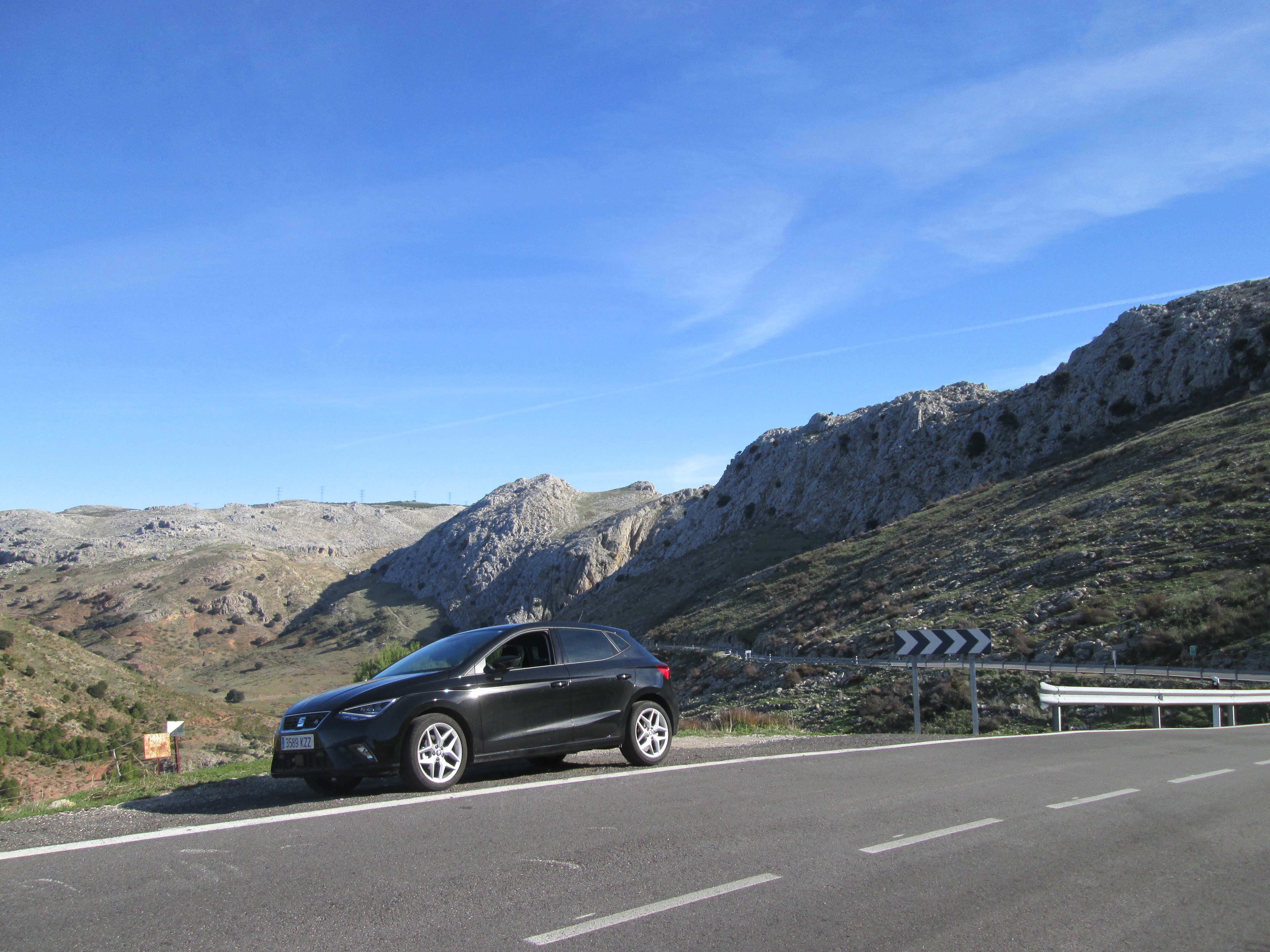 As it is again another lovely blue day and I got my sea fix yesterday, I ask TomTom to take me to Cadiz avoiding motorways and toll roads. As I love driving, the Seat Ibiza is quite an easy drive and time is entirely my own today, I accept the cross country route offered. I’ve done the drive from Cadiz back to Malaga via the coast – and will enjoy the views of Gibraltar and Algeciras on Friday on my way back. So I navigate the Malaga suburbs and then find myself on route A366. What is it about Routes with 66? This one soon enters the Sierra de las Nieves – it means snowy mountains so that’s a bit of a giveaway. The first pass is at 890 metres which is quite high. But we then do switchbacks and hairpins up to Puerto del Viento at 1190 which really is a long way up.