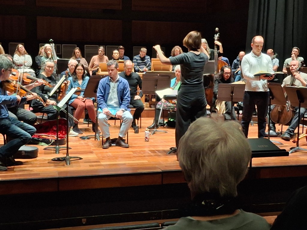 My last cultural outing of March also celebrated, by a weird coincidence, the year 1724 which just happened to be the date of Bach’s St John Passion which the OAE were performing in the Queen Elizabeth Hall. As a ‘friend’ I was also invited to attend the rehearsal with German conductor Johanna Soller making her debut appearance with the orchestra. She knows how to get asked back – she cut Sunday’s rehearsal by an hour – always goes down well with musicians! This rehearsal may have been brief but it was also fascinating. Ms Soller is clearly a producer as well as conductor, keyboard star and singer. She started by having the QEH staff move the rostra about so that the chorus formed a shallow horeshoe rather than a straight line; she moved soloists’ seats to better catch the hall’s lighting and during the course of the rehearsal frequently skipped off the stage, ran up the aisle to listen from the cheap seats and make sure we’d all get the best possible experience in the evening. She gave a number of notes and we could hear their immediate effect on volume, phrasing, pronunciation and diction. All very impressive but did it work?