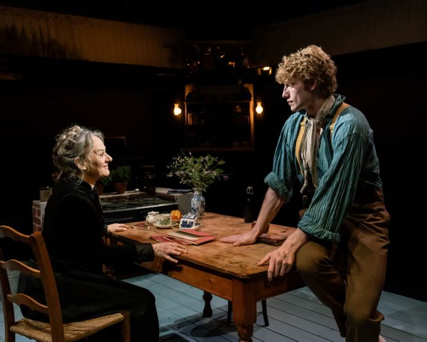 Next was a trip to Richmond for Vincent in Brixton which I missed at the NT in 2002 but this seems to be a time of revivals what with Teeth and Smiles and Copenhagen on the horizon. Nick Wright’s imagined revelations of van Gogh’s year in lodgings in Brixton, while working as an art dealer in Covent Garden, was a delight. The amazing Niamh Cusack led a cast in which three of the four were making their stage debuts – quite a week for debuts! It’s a quiet domestic piece in which we are treated to the kitchen odours of cooking on a working stove and later shared Niamh’s pride at her separation of egg yolk and white done in real time. It’s like a mystery story where you know the outcome but the characters don’t. Vincent was scathing about the work of fellow lodger Sam but we didn’t see any of his own work or sense his promise. He was a confused young man in a foreign country experiencing strong emotions and desire for the first time. Initially attracted to the daughter Eugenie, it was to landlady Ursula that we are led to believe he lost his virginity. It’s a play about grief, Ursula still in widow’s black, restless relationships and passion and everyday life gently unfolding in the Orange Tree’s intimate space.