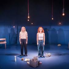 Next to the Donmar for Anna Ziegler’s Evening all Afternoon – a tense two-hander with Anastasia Hille as Jennifer, a suspect new stepmother and Erin Kellyman, making her stage debut, as Delilah, the suspicious and resentful daughter. Both actors are superb – Hille is all internalised emotion, with staunch British values, stiff upper lip and sense of decorum, responding stoically to the taunts thrown at her. I really can’t believe that this was Kellyman’s stage debut – apparently she’s well-known on screen but not in shows I’ve seen. (I also note now that Erin will be in the TV show 2026 – the successor to the 2012 and W1A satires that lit up our screens with [presentation of wondrous, pretentious incompetence.)