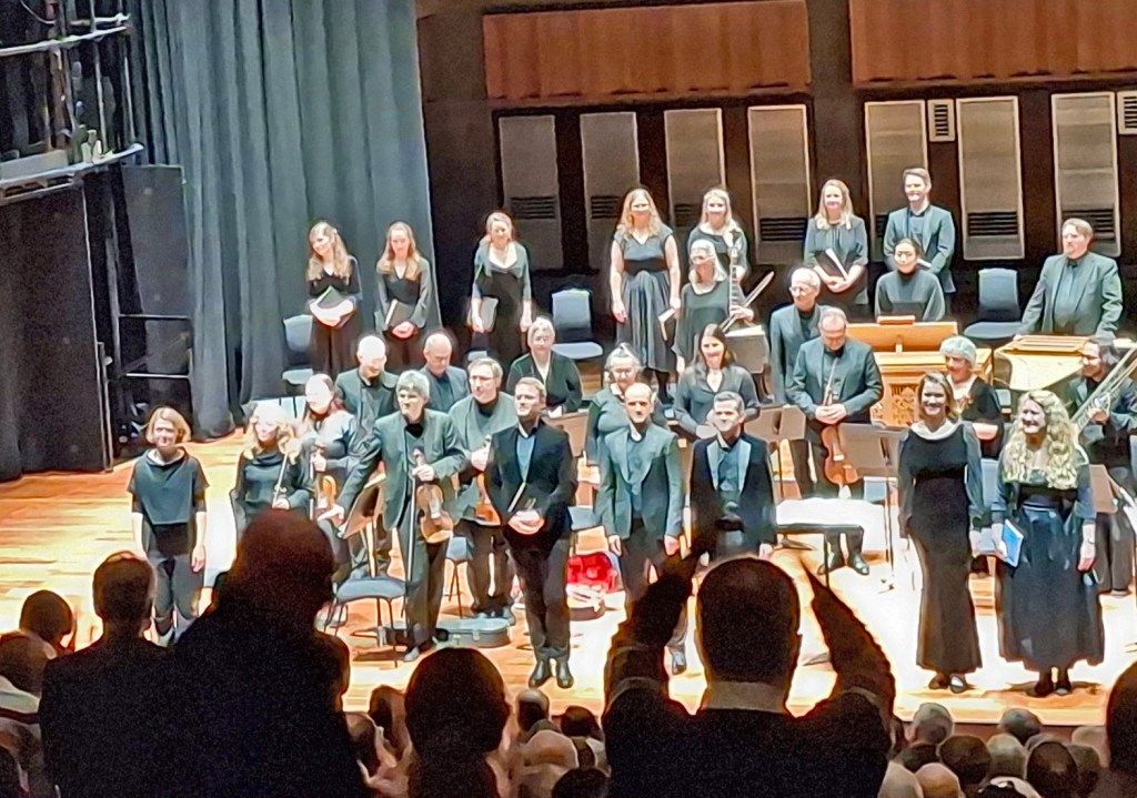 Emphatically, yes! Her energy and dramatic timing made this one of the most operatic readings of the mass and that includes Peter Sellars’ staged version with Simon Rattle and the OAE in 2019. The orchestra have played both Bach passions many times but sounded fresh and engaged last night. The score is so melodic and dramatic – the build up to scene 33 “And behold, the curtain in the temple was torn in two pieces from top to bottom. And the earth shook, and the cliffs were rent, and the graves opened up, and many bodies of saints arose.” shook the entire hall. This is in contrast to the beautiful alto aria “Es ist vollbracht – It is finished” sung by the wonderful Helen Charlston continuing her long assoctaion with the OAE having been one of its early Rising Stars. All soloists were excellent James Way as the evangelist, Peter Edge – one of the current cohort of Rising Stars – as Christus, Hillary Cronin, Jonathan Hanley and then Tristan Hambelton as Pilate was outstanding in his empathetic reading as the representative of Roman law. Johanna Soller congratulated all areas of the orchestra in turn and selflessly stood to one side as the band and soloists took their bow, A fine debut and let’s see much more of her in the UK.