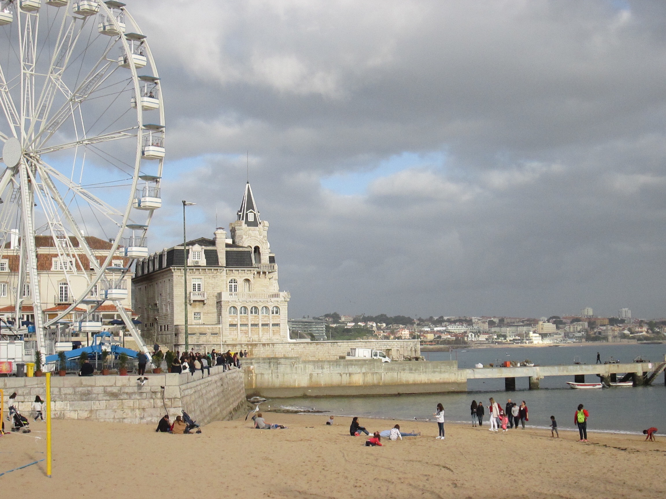 The famous street pavers had overdone it here with a wavy patterns than made me quite dizzy as it looks like the paving is in peaks and troughs but is all flat. However grilled sardines with butter, sea salt and parsley were a grand recompense for holding off lunch till nearly four o’clock, Facing me was a wheel, at 32 metres the biggest in Portugal according to the display on the screen beside it. After lunch I walked along the seafront passing another cove before coming to the station. Again the evidence of crowded summer visits was everywhere as only about half of the souvenir and ‘craft’ shops were open and I could feel the potential of the August crush.