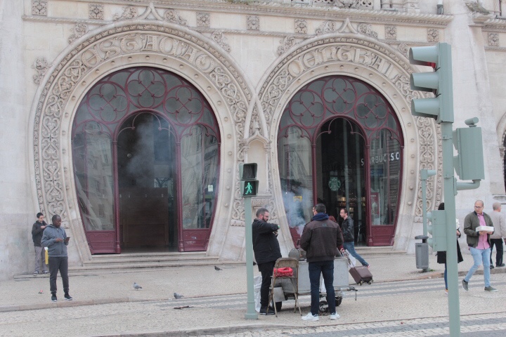 A train was leaving a few minutes after I arrived and it hugs the coast all the way back into Lisbon with occasional great views interspersed with the backs of apartment blocks. Not as dramatic as Dawlish to Teignmouth in Devon but a fun ride. As it was nearly dark and beginning to rain I decide not to get off at Estoril which I’ve herd from many is a fine town – well it’s something to look forward to.