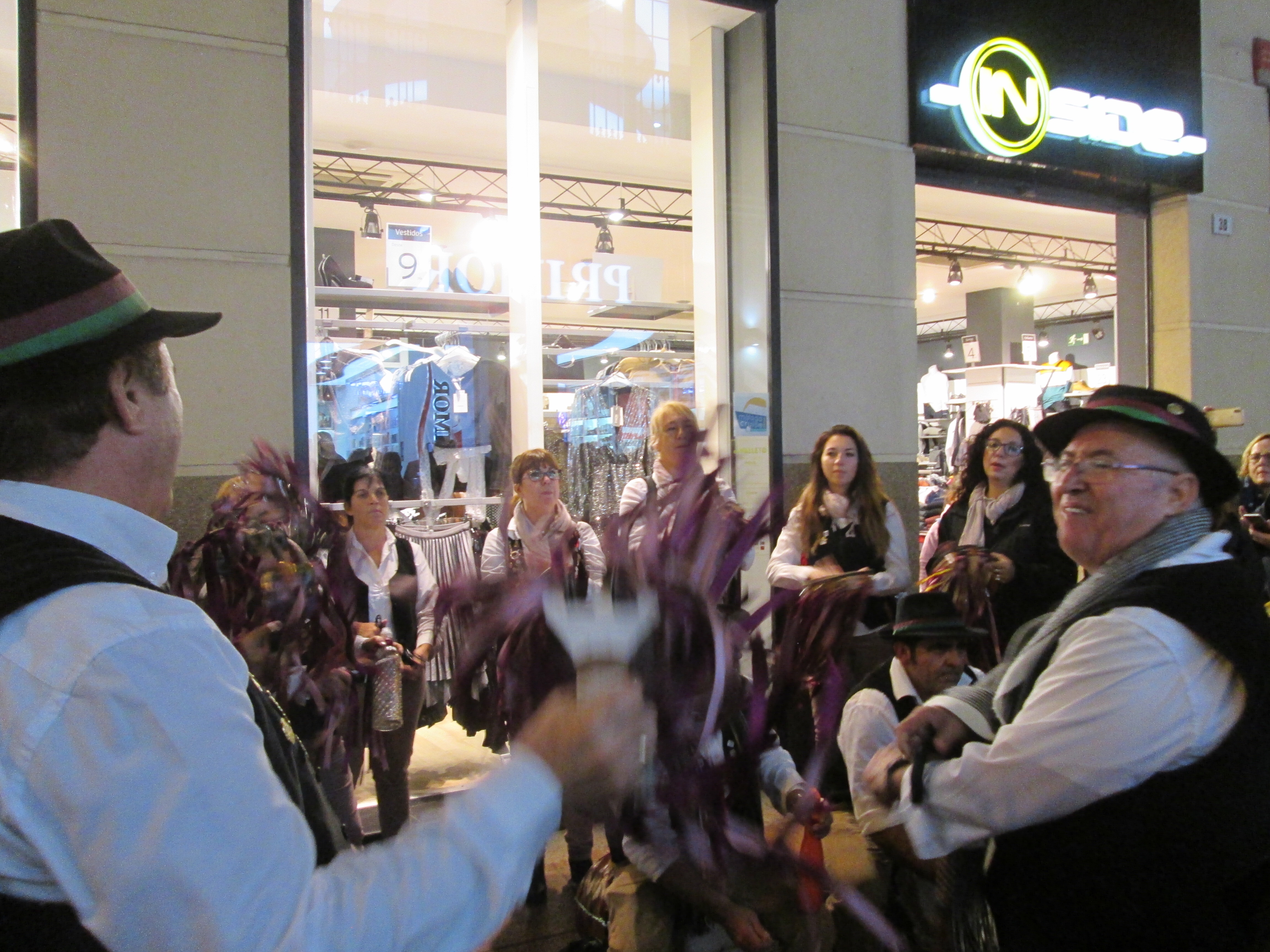 I asked the proprietor where buses departed for Torrox Pueblo and was advised to leave my car where it was and walk five minutes up the road. I came to a Lidl where the checkout lady explained that the bus stop was just opposite and a few metres back. I’d walked past it! By the way there are now almost as many Lidl and Aldi stores in Spain as there are Chinese Bazaars. Fortunately a bus arrived within a few minutes and I was soon climbing the narrow streets to the main square. As a WhatsApp from Loz confirmed – just follow the noise. As I entered the square arms shot up in greeting and beckoned me over to the front of the stage where three young ladies, a percussionist and a guitarist were performing very catchily such that all the local ladies of a certain age were dancing enthusiastically. Hugs and kissed all round as Loz and I reintroduced ourselves after first meeting at a Watford City Orns outing to a T20 cricket match at Hove probably about eight years ago. The kisses were for his sister Michelle and other female friends. Beers were nobly produced and Loz seemed genuinely delighted to have the copy of the book I wrote for the club’s charity’s 25th anniversary – it had just been his birthday so it had to double as that and a Christmas gift. The music stopped, beers were finished and we began the further climb up to the car park at the top of the village which is where free wine and migas were on offer.