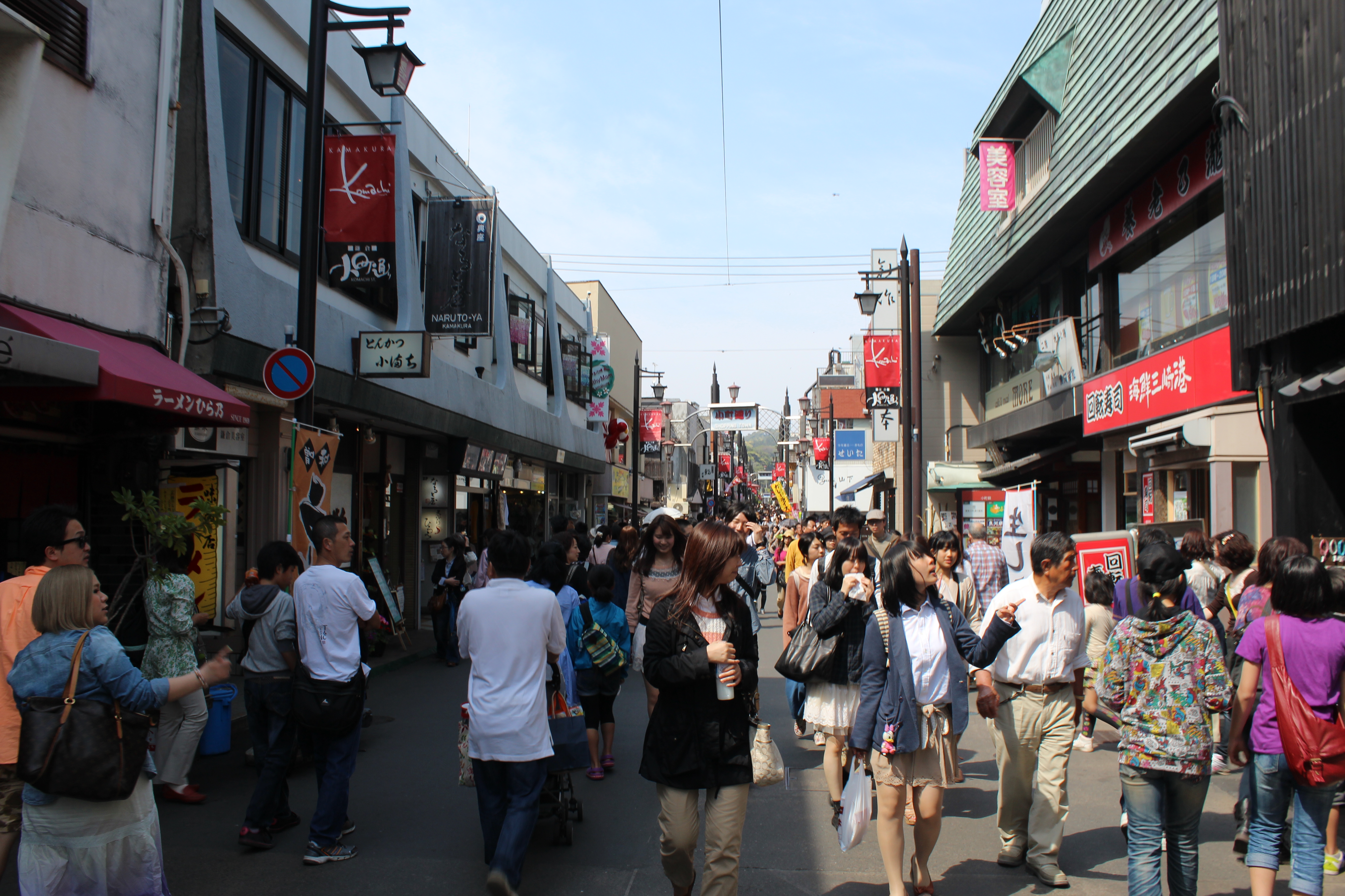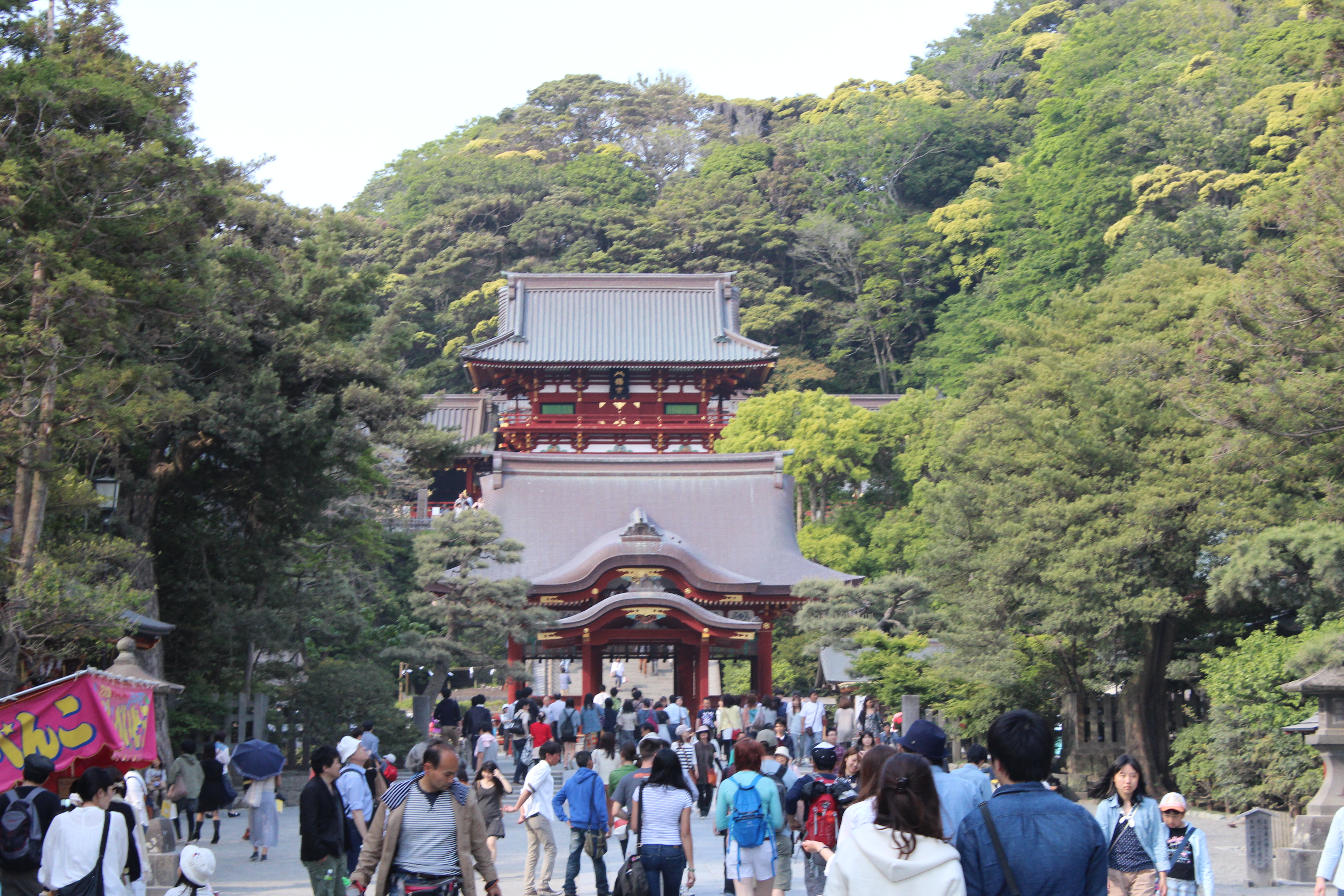 On arrival in Kamakura, our first trip is through Shopping Town to the Tsurugaoka Hachimangu Shrine. It never fails to surprise me how the route to sacred sites is always lined with hundreds of retail and food outlets. We finally make to the shrine – an important site in a lovely setting in wooded hills above the town. It’s a real struggle to make progress through the streets as the Japanese on holiday have only two speed settings – amble and dawdle. Our thrusting western strides are frequently forced to a shuffle as blocks of ditsing humanity prevent our progress.